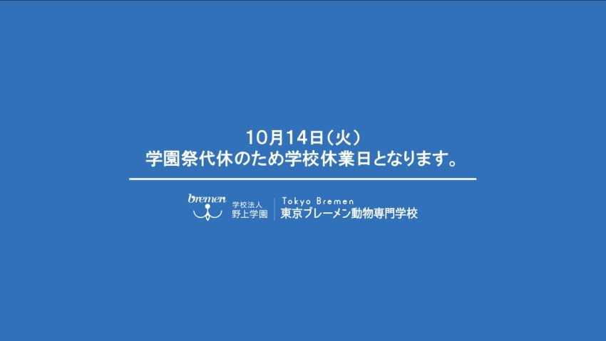 10月14日(火)は学校休業日となります。10月15日(水)より通常授業となります。